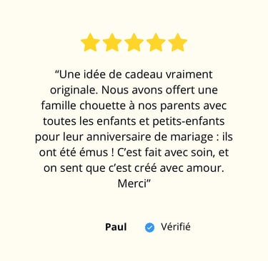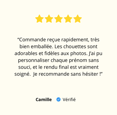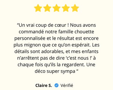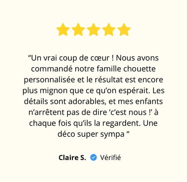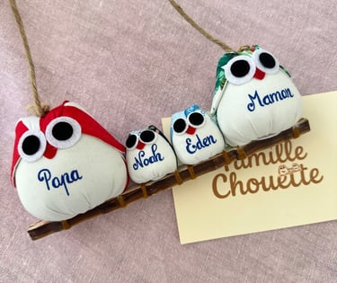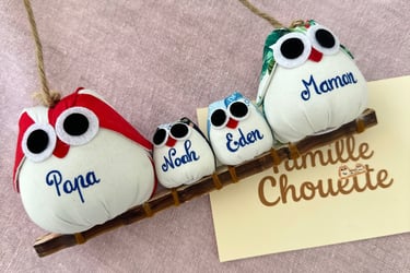 Chaque famille chouette est unique et peut être personnalisée gratuitement avec les prénoms de votre choix, il vous suffit de nous le préciser lors de la commande.